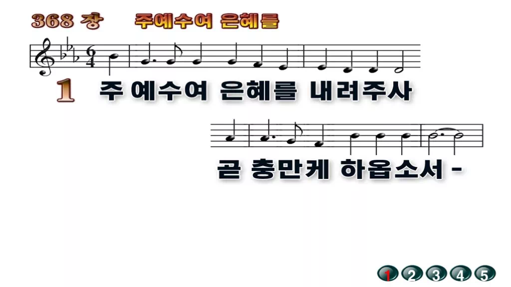 368장 - 주 예수여 은혜를 내려주사 찬송가의 배경없는 PPT 악보입니다.
