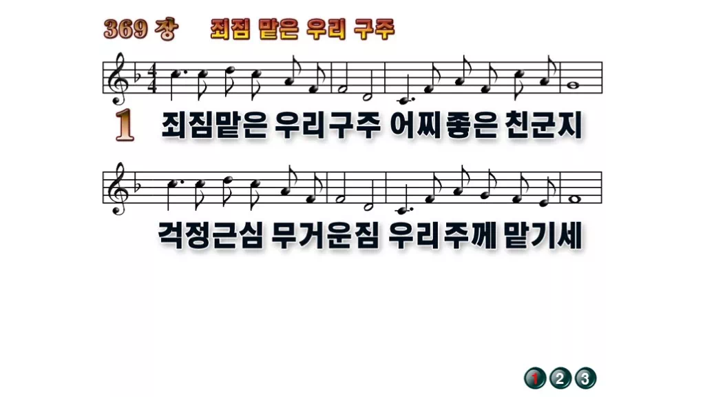 369장 - 죄 짐 맡은 우리구주 찬송가의 배경없는 PPT 악보입니다.