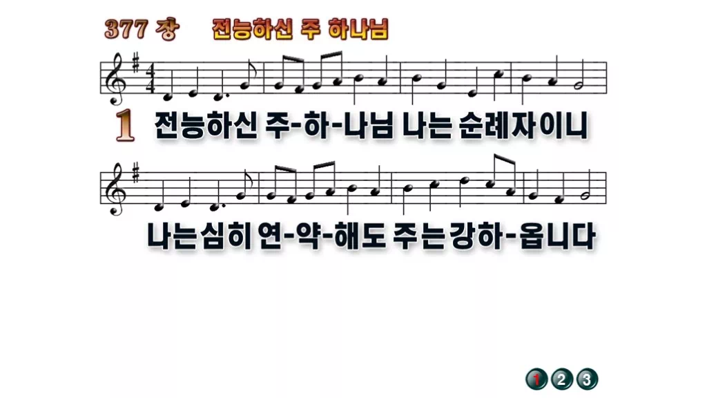 377장 - 전능하신 주 하나님 찬송가의 배경없는 PPT 악보입니다.