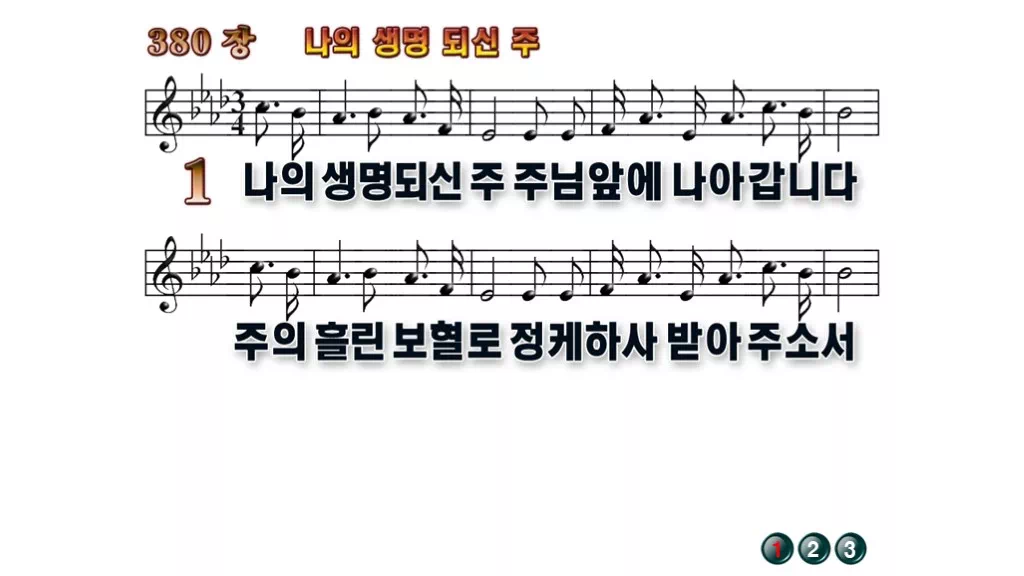 380장 - 나의 생명 되신 주 찬송가의 배경없는 PPT 악보입니다.