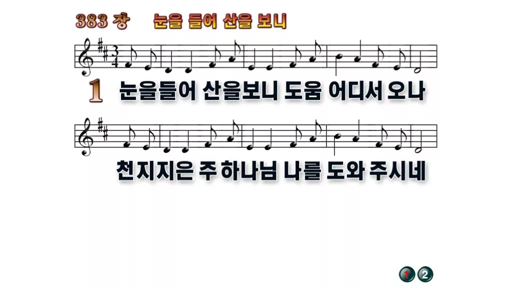 383장 - 눈을 들어 산을보니 찬송가의 배경없는 PPT 악보입니다.