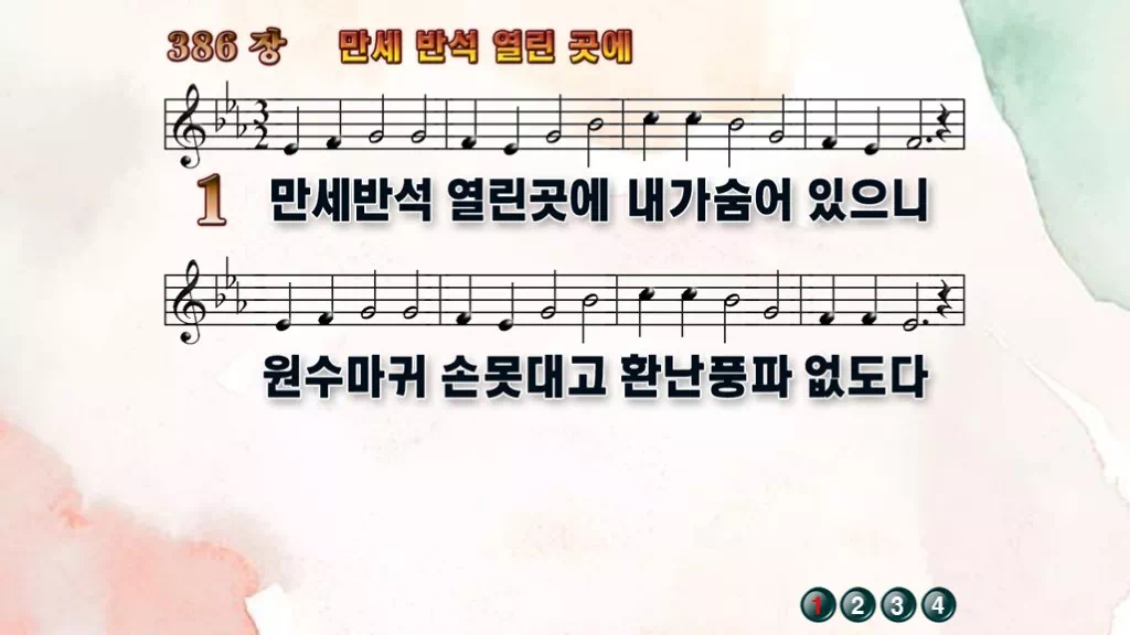 386장 - 만세 반석 열린곳에 찬송가의 PPT 악보입니다.
