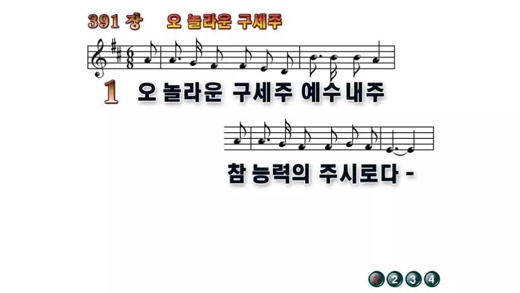 391장 - 오 놀라운 구세주 찬송가의 배경없는 PPT 악보입니다.