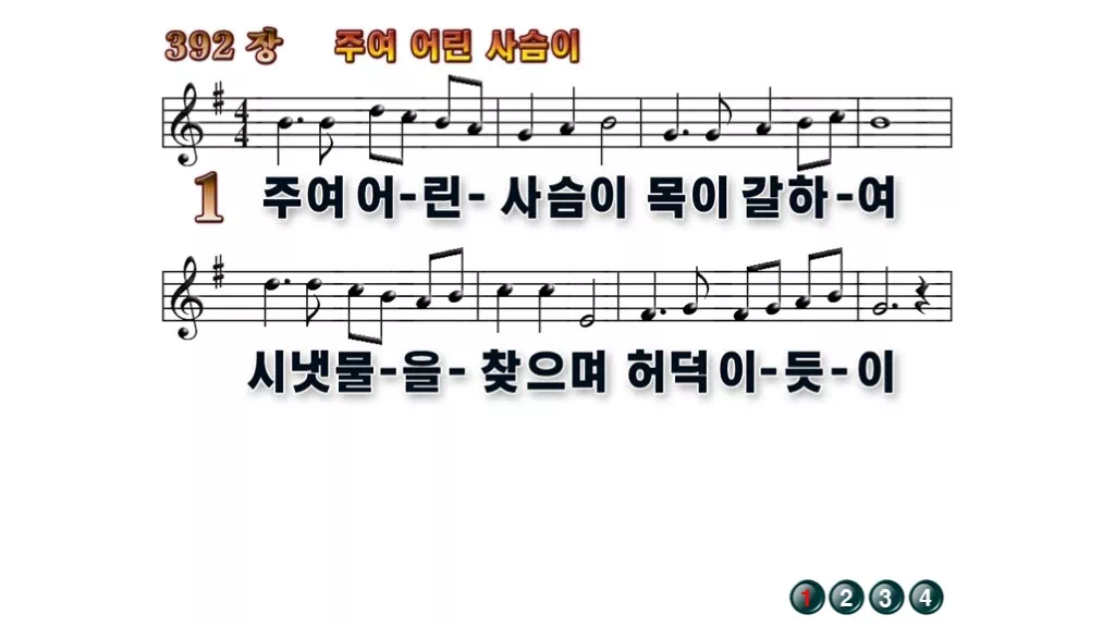 392장 - 주여 어린 사슴이 찬송가의 배경없는 PPT 악보입니다.