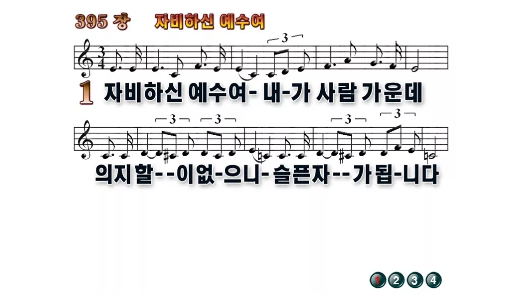 395장 - 자비하신 예수여 찬송가의 배경없는 PPT 악보입니다.