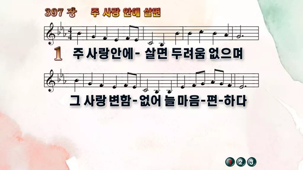 397장 - 주 사랑 안에 살면 찬송가의 PPT 악보입니다.