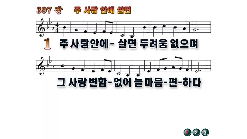 397장 - 주 사랑 안에 살면 찬송가의 배경없는 PPT 악보입니다.