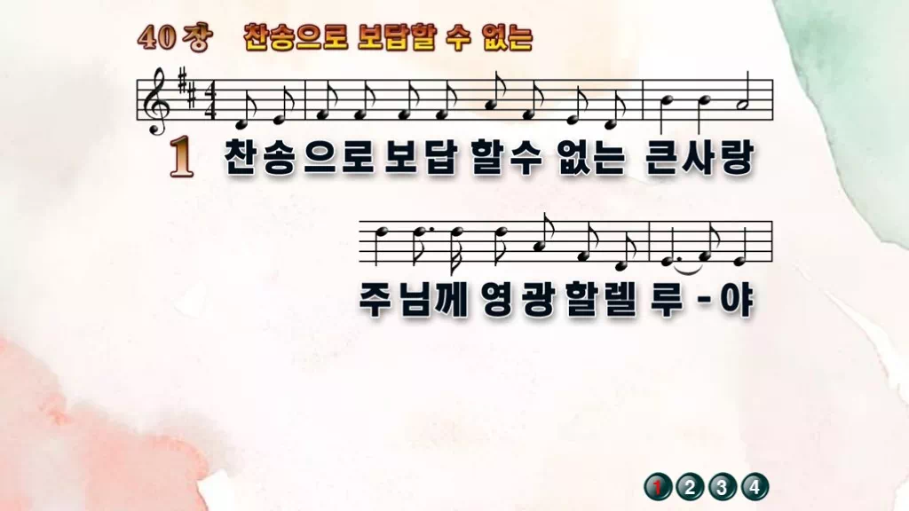 40장 - 찬송으로 보답할 수 없는 찬송가의 PPT 악보입니다.