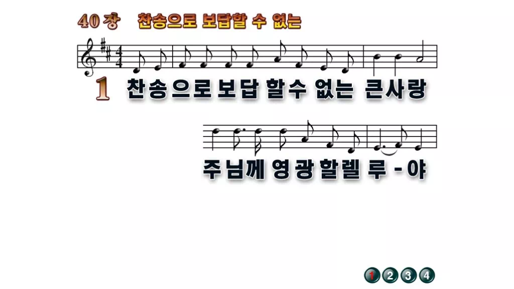 40장 - 찬송으로 보답할 수 없는 찬송가의 배경없는 PPT 악보입니다.