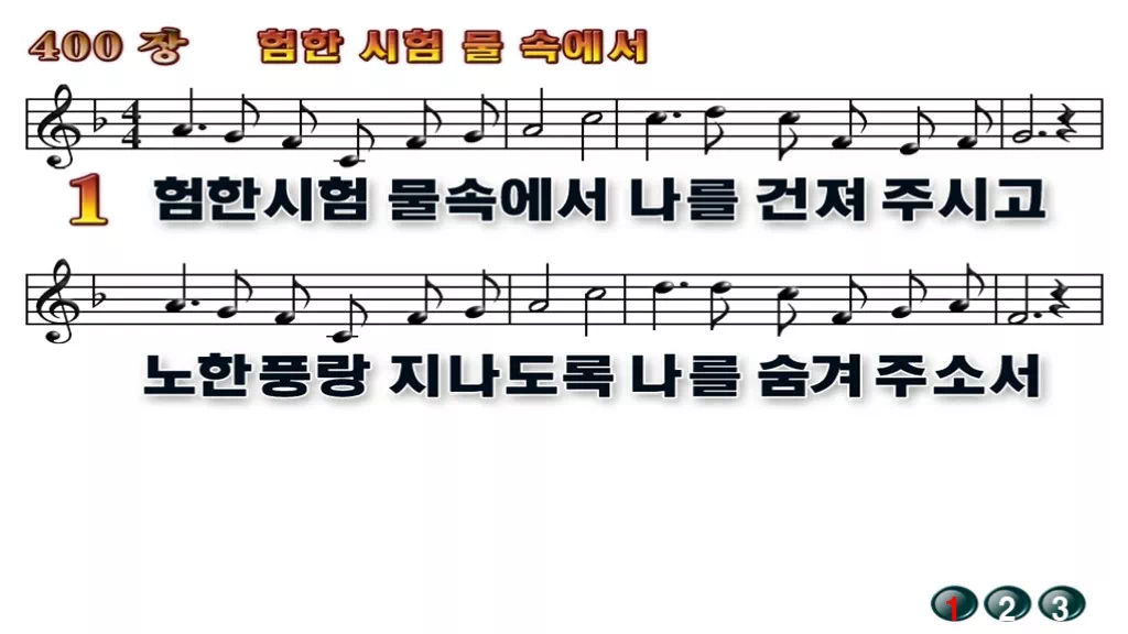 400장 - 험한 시험 물 속에서 찬송가의 배경없는 PPT 악보입니다.