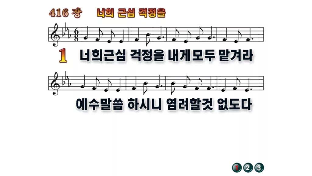 416장 - 너희 근심 걱정을 찬송가의 배경없는 PPT 악보입니다.