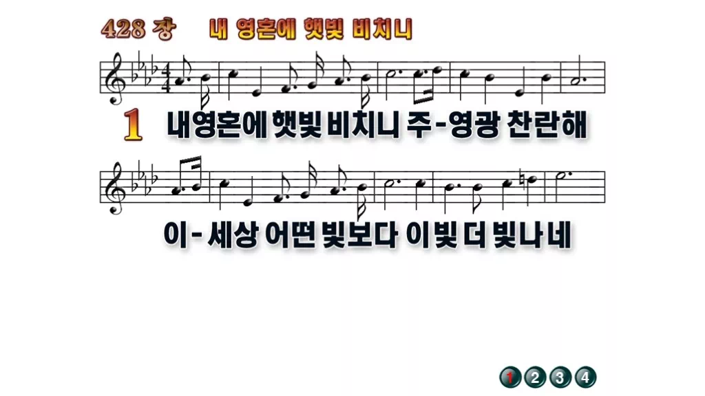428장 - 내 영혼에 햇빛 비치니 찬송가의 배경없는 PPT 악보입니다.
