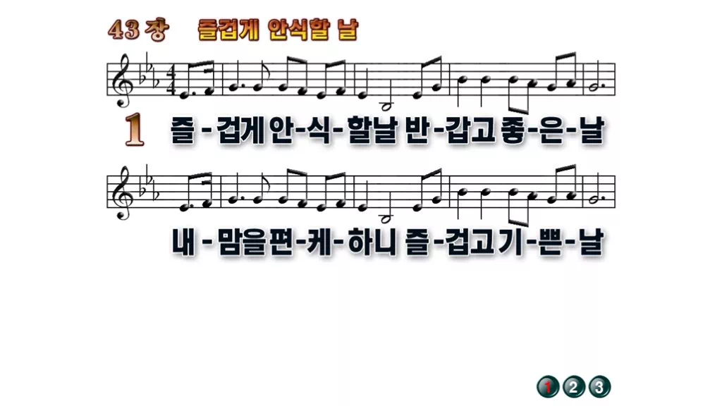 43장 - 즐겁게 안식할 날 찬송가의 배경없는 PPT 악보입니다.