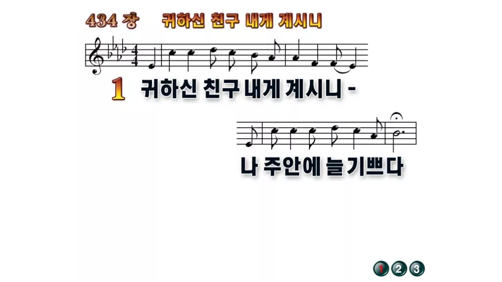 434장 - 귀하신 친구 내게 계시니 찬송가의 배경없는 PPT 악보입니다.