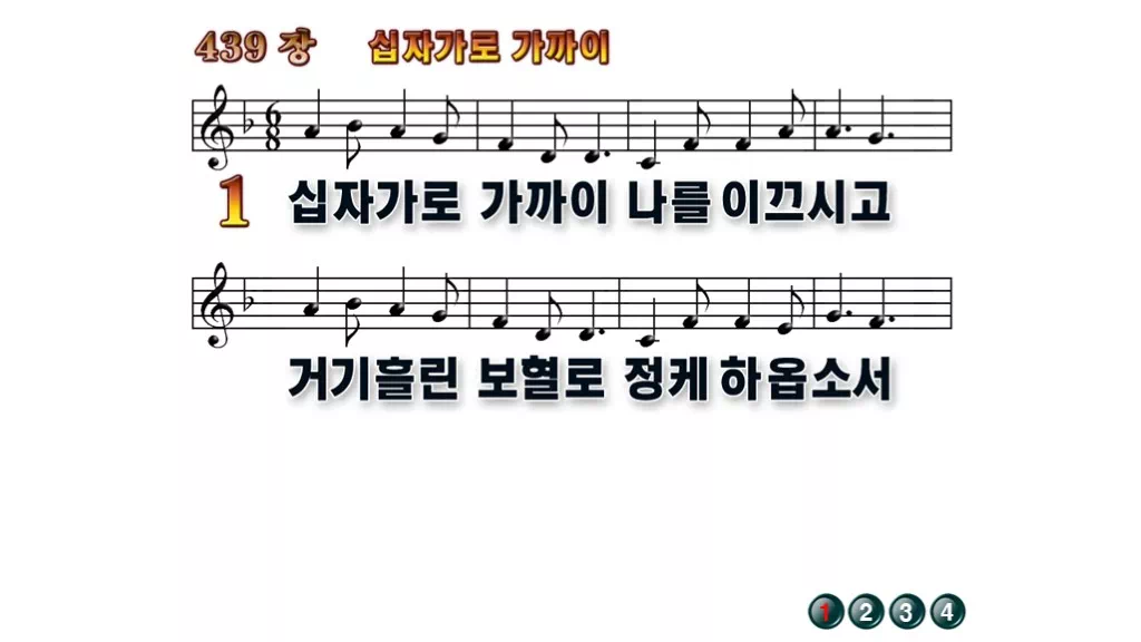 439장 - 십자가로 가까이 찬송가의 배경없는 PPT 악보입니다.