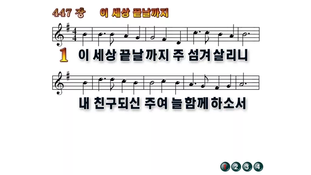 447장 - 이 세상 끝날까지 찬송가의 배경없는 PPT 악보입니다.