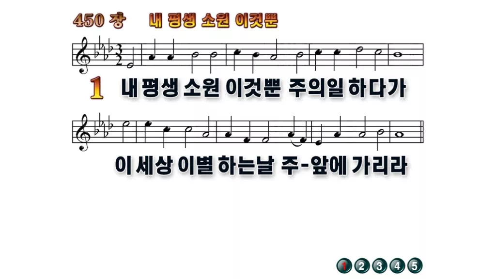 450장 - 내 평생 소원 이것뿐 찬송가의 배경없는 PPT 악보입니다.