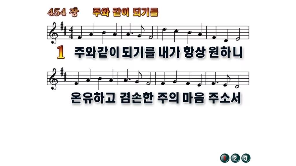 454장 - 주와 같이 되기를 찬송가의 배경없는 PPT 악보입니다.