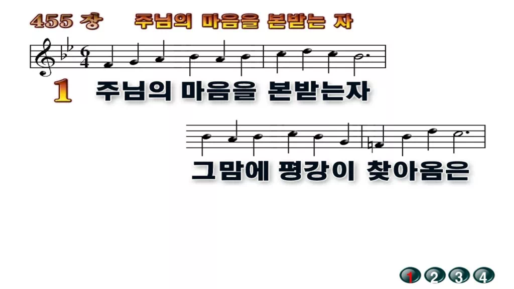 455장 - 주님의 마음을 본받는 자 찬송가의 배경없는 PPT 악보입니다.