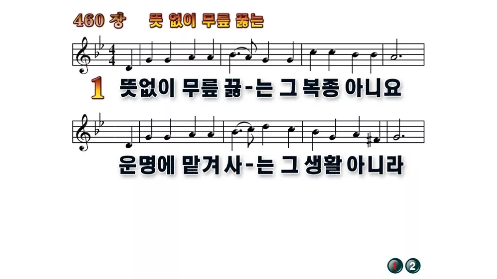 460장 - 뜻 없이 무릎 꿇는 찬송가의 배경없는 PPT 악보입니다.