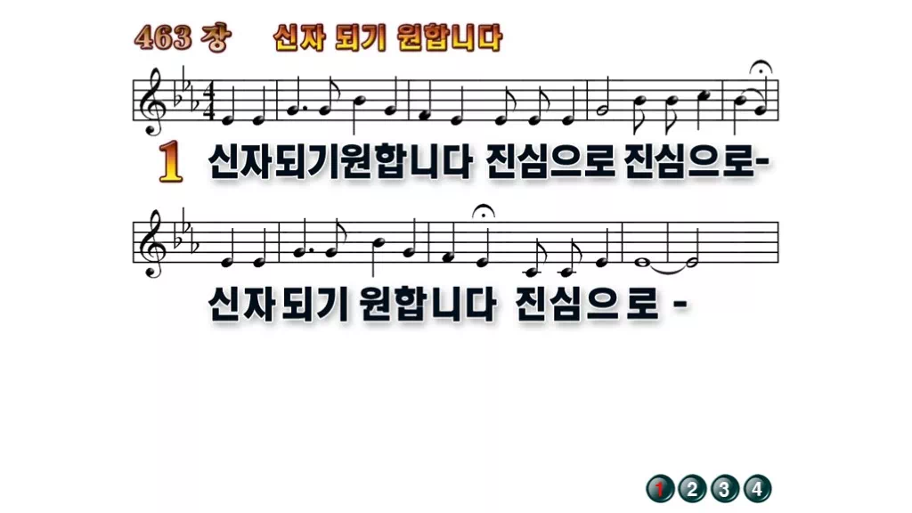 463장 - 신자 되기 원합니다 찬송가의 배경없는 PPT 악보입니다.
