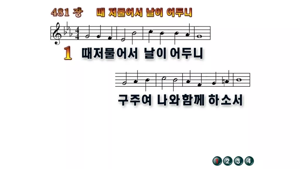 481장 - 때 저물어서 날이 어두니 찬송가의 배경없는 PPT 악보입니다.
