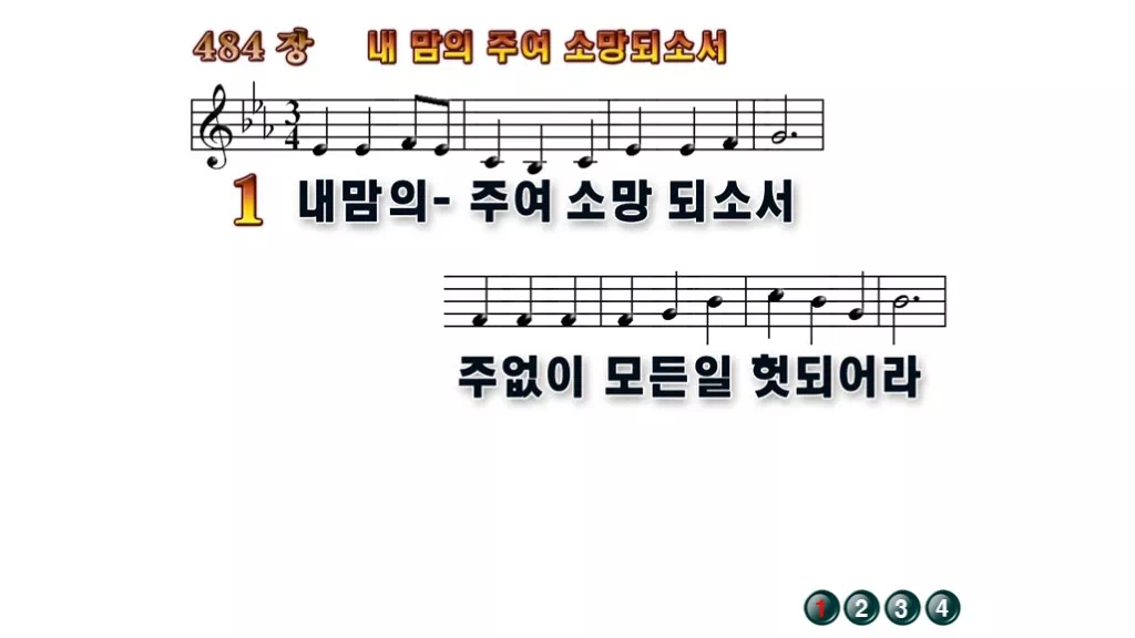 484장 - 내 맘의 주여 소망되소서 찬송가의 배경없는 PPT 악보입니다.