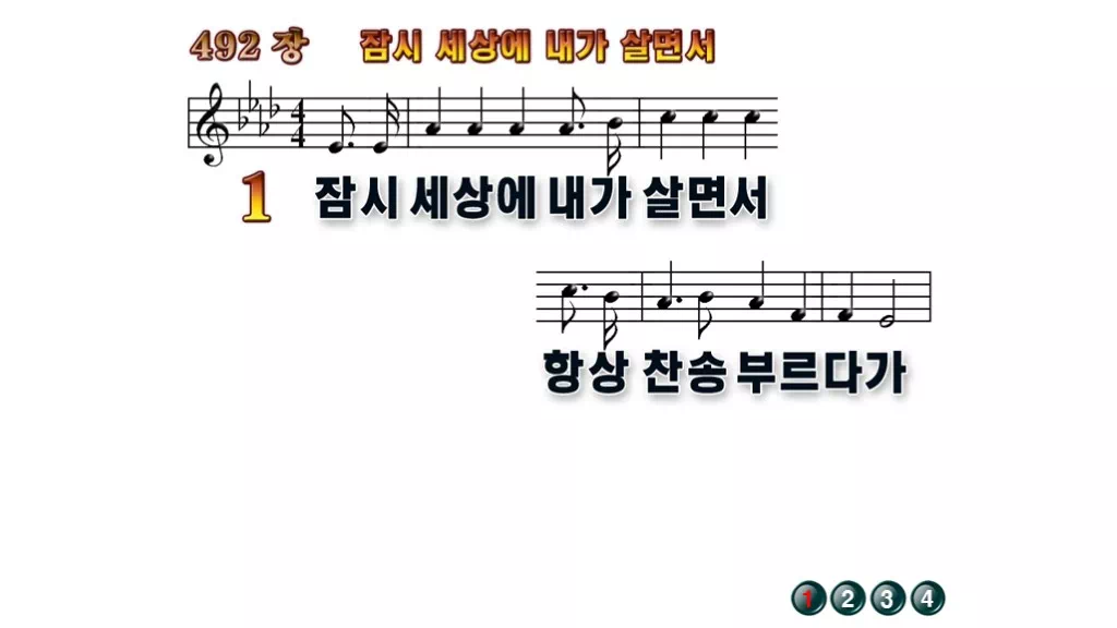 492장 - 잠시 세상에 내가 살면서 찬송가의 배경없는 PPT 악보입니다.
