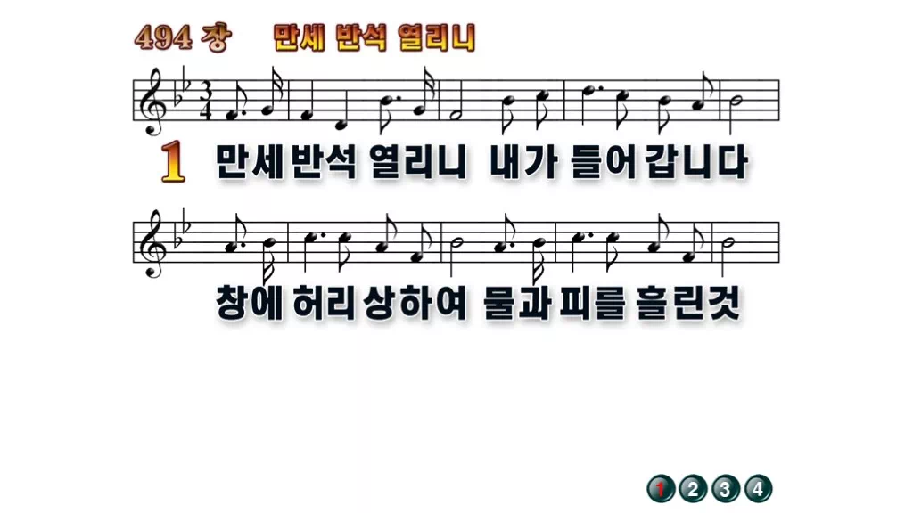 494장 - 만세반석 열리니 찬송가의 배경없는 PPT 악보입니다.