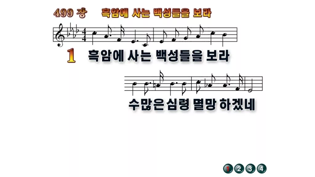 499장 - 흑암에 사는 백성들을 보라 찬송가의 배경없는 PPT 악보입니다.