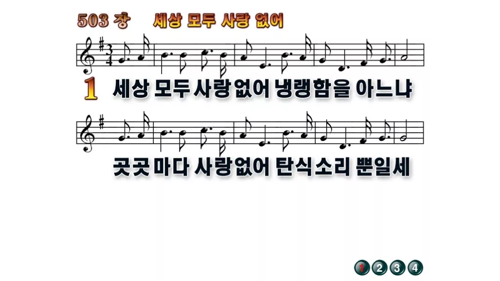503장 - 세상 모두 사랑없어 냉랭함을 아느냐 찬송가의 배경없는 PPT 악보입니다.