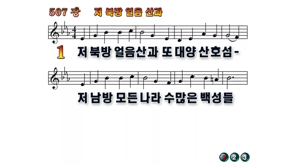 507장 - 저 북방 얼음 산과 찬송가의 배경없는 PPT 악보입니다.
