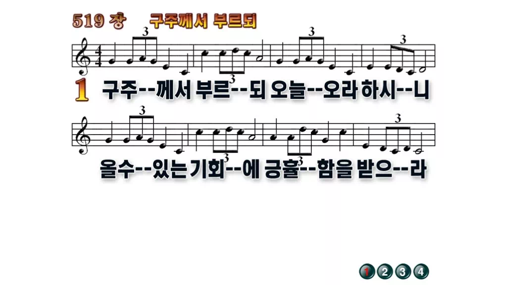 519장 - 구주께서 부르되 찬송가의 배경없는 PPT 악보입니다.