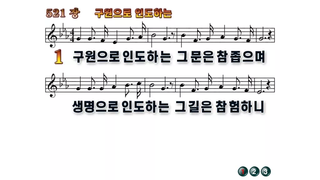 521장 - 구원하는 인도하는 찬송가의 배경없는 PPT 악보입니다.