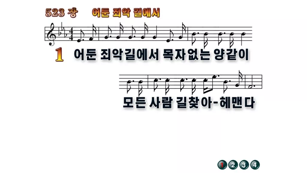 523장 - 어둔 죄악 길에서 찬송가의 배경없는 PPT 악보입니다.