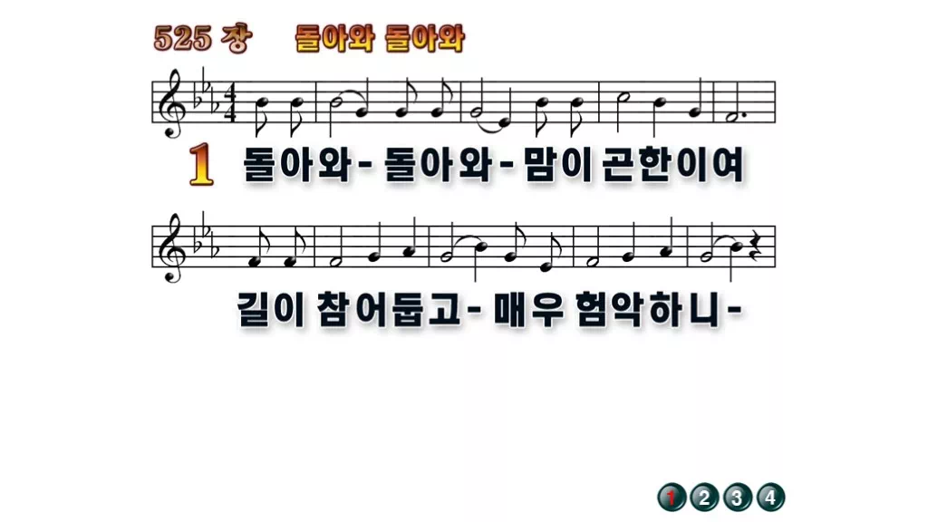 525장 - 돌아와 돌아와 찬송가의 배경없는 PPT 악보입니다.