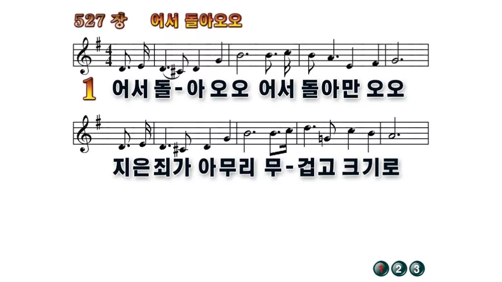 527장 - 어서 돌아오오 찬송가의 배경없는 PPT 악보입니다.