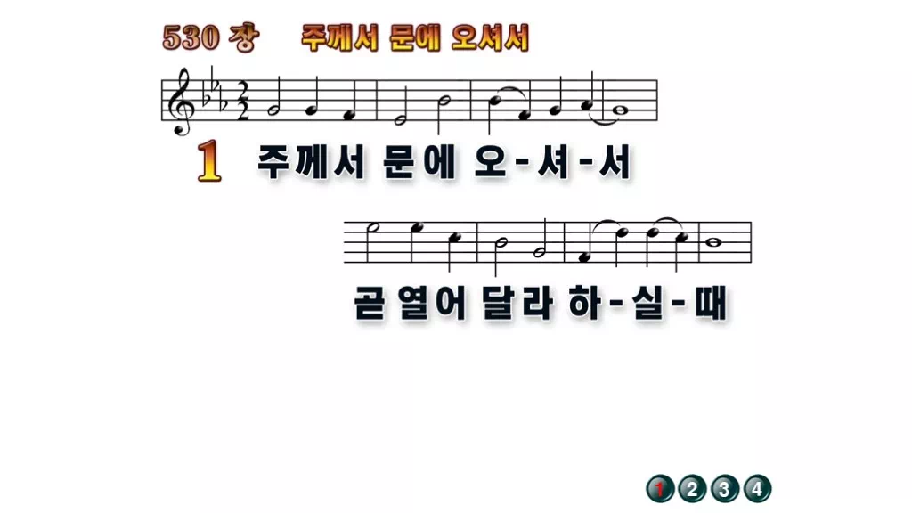 530장 - 주께서 문에 오셔서 찬송가의 배경없는 PPT 악보입니다.
