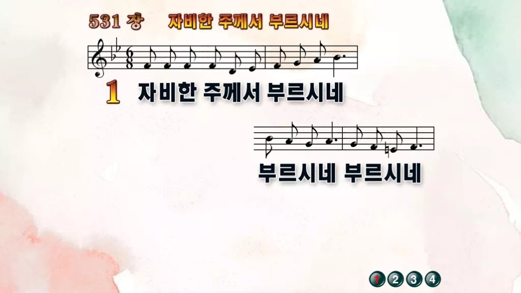 531장 - 자비한 주께서 부르시네 찬송가의 PPT 악보입니다.