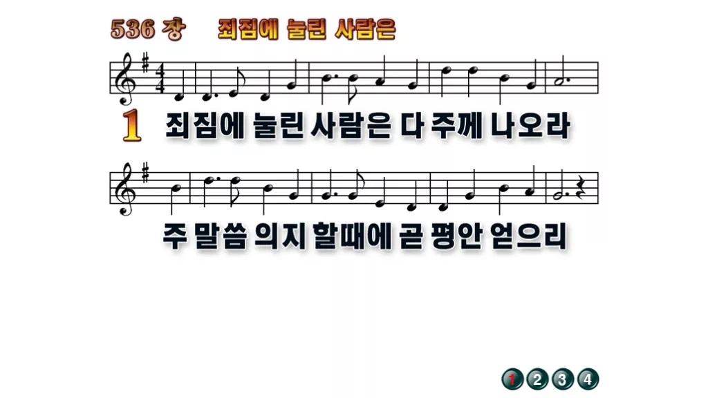 536장 - 죄짐에 눌린 사람은 찬송가의 배경없는 PPT 악보입니다.