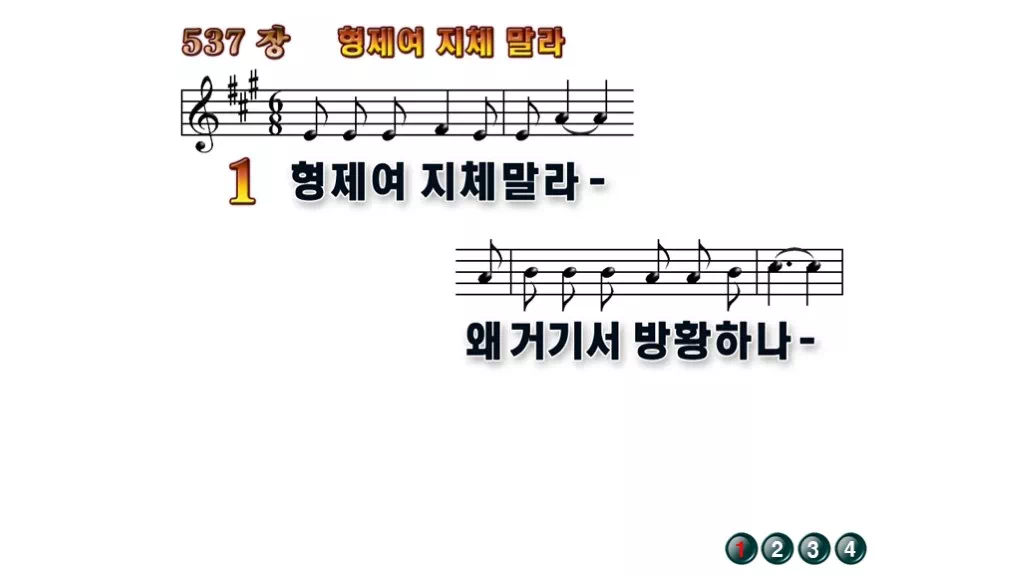 537장 - 형제여 지체 말라 찬송가의 배경없는 PPT 악보입니다.