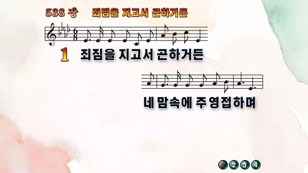 538장 - 죄짐을 지고서 곤하거든 찬송가의 PPT 악보입니다.