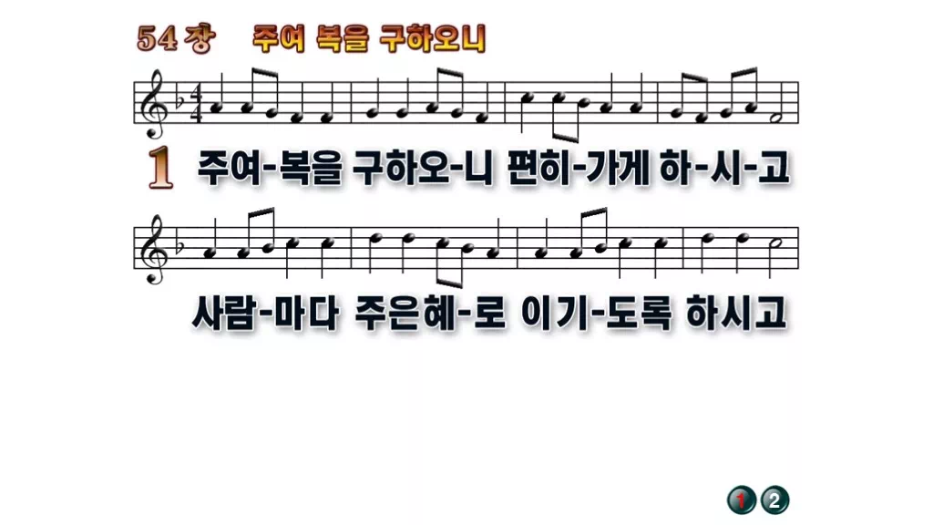 54장 - 주여 복을 구하오니 찬송가의 배경없는 PPT 악보입니다.