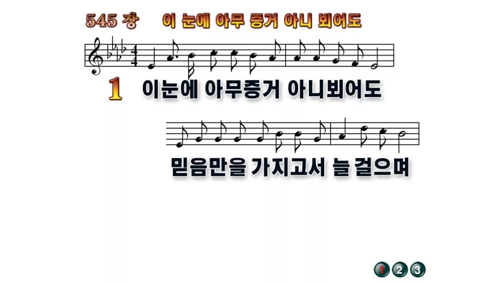 545장 - 이 눈에 아무 증거 아니 뵈어도 찬송가의 배경없는 PPT 악보입니다.