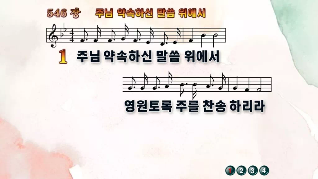 546장 - 주님 약속하신 말씀 위에서 찬송가의 PPT 악보입니다.