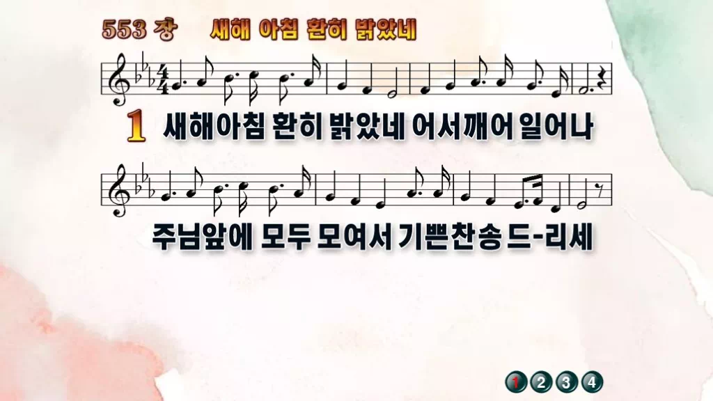 553장 - 새해 아침 환히 밝았네 찬송가의 PPT 악보입니다.