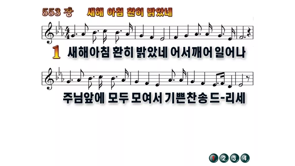 553장 - 새해 아침 환히 밝았네 찬송가의 배경없는 PPT 악보입니다.