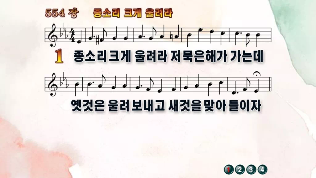 554장 - 종소리 크게 울려라 찬송가의 PPT 악보입니다.