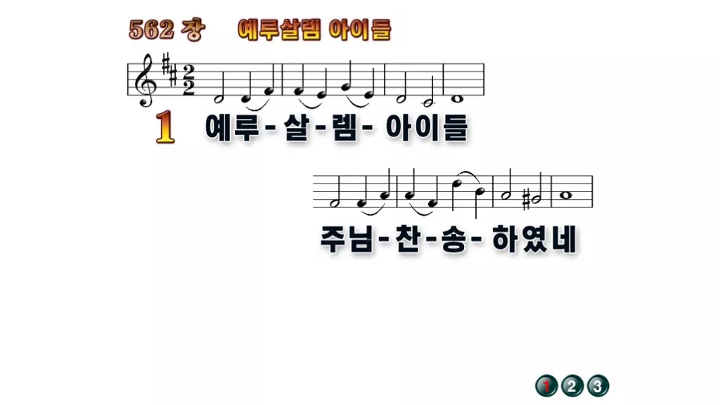 562장 - 예루살렘 아이들 찬송가의 배경없는 PPT 악보입니다.