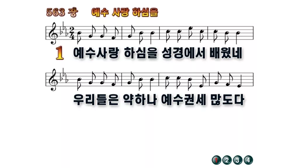 563장 - 예수 사랑하심을 찬송가의 배경없는 PPT 악보입니다.